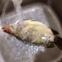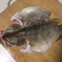 将桂鱼宰杀并清洗干净,并将桂鱼从鱼肚处向鱼背处剖开(注意不要将鱼背剖断,而且小心鱼刺,阿牧小心又小心,还是把指头扎破了哭泣)