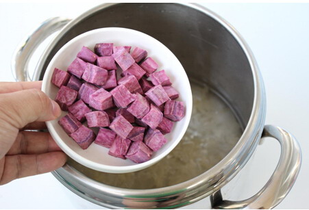 3.旋转排气阀90度完成快速泄压,加入紫薯继续加压8分钟。
