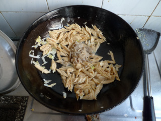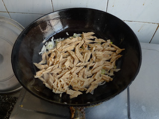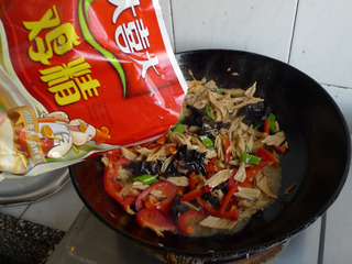 葱姜 (适量) 炒好的猪肉丝 (50克)