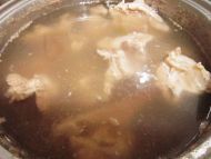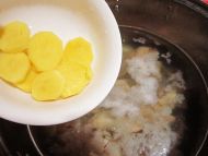 6.将羊肉放入汤锅中(砂锅更好),放入姜片,大火烧开后,中火煮半个小时。