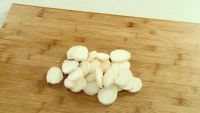 1、首先将上海青去尾叶,一开二切开、杏鲍菇切片。