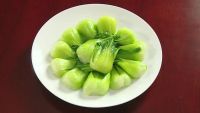 1. 小白菜芯提前放入适量的盐和油中焯水,摆放在盘中;