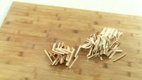 1.香干切丝,红椒、青椒切丝、蒜子拍扁切末。