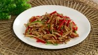 辣椒不易久炒,所以最后放入,炒至断生即可。