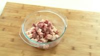 1.猪梅肉切小块,放入料酒、胡椒粉、两勺生粉拌匀,腌制十分钟。