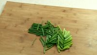 1.韭菜花切段,挑出头部,豆干切条,蒜子切片。