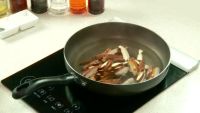 3.锅入油,下入蒜片,翻炒数秒,放一勺牛肉酱、豆干,均匀翻炒。