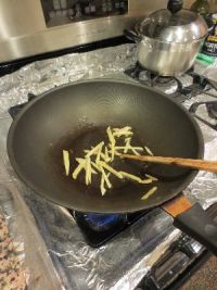 4.锅内放少许油,放入姜煸香