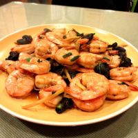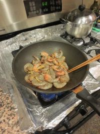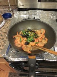 5.放入海虾,翻炒到部分变色