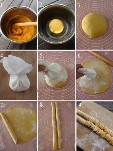 1.用料中面粉的用量仅做参考,它会因为南瓜泥中水分含量的不同而变化;不过要注意提做手擀面的面团一定要和得硬一些,这样做出来的面条口感才筋道;