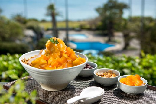 凯悦酒店为迎接夏季,推出了用济州产爱文芒果制作的冰沙。把济州产爱文芒果与红豆熬制后放在济州岛本地牛奶制冷后细细研磨而成的冰淇淋上。将汉拿山艾蒿榨汁制作的艾蒿糕作为配餐。冰爽味道和柔嫩的果肉,香浓味甜,使冰沙风味独特。此外,还出售利用济州产覆盆子和蓝莓制成的冰沙,售价为3-3.6万韩元(约合人民币162-194元)。